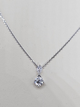 - 1 бриллиант фантазийной огранки "груша", общим весом 0,16 карат с характеристиками 4/3А цепь не съёмная