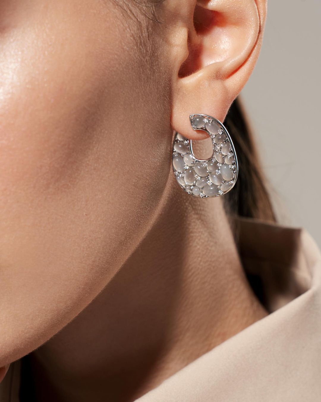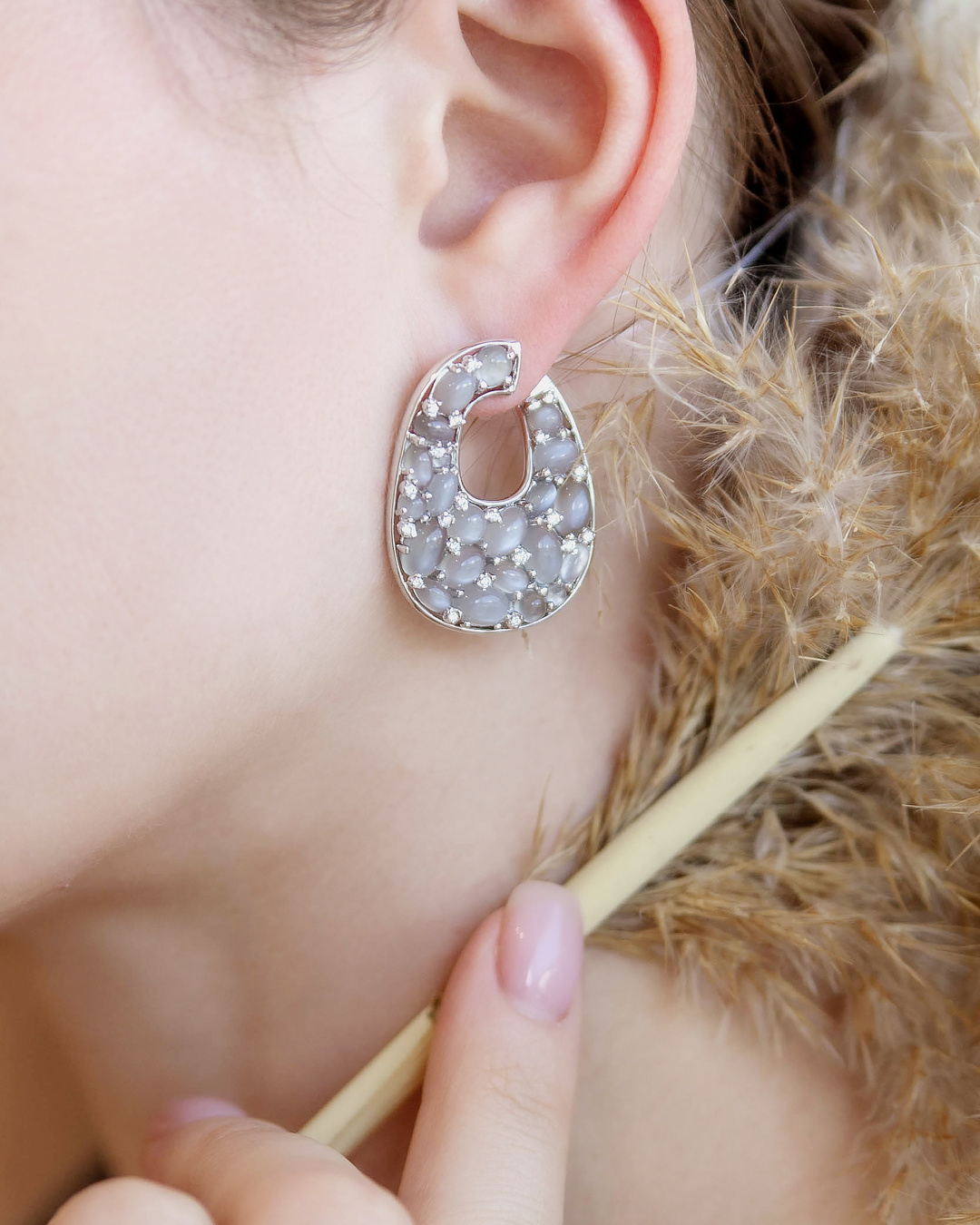 Белое , Золото 750 пробы - 44 лунных камня, общим весом 13,84 карат